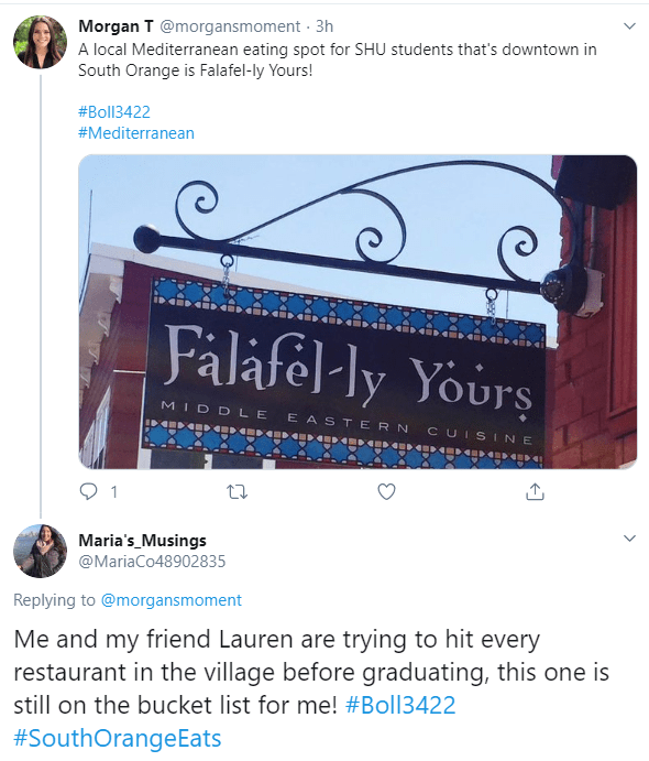 One of the most fun parts of this experience was interacting with my fellow classmates. As you can see above, I got a chance to chat with one of my classmates Morgan on her tweet.
