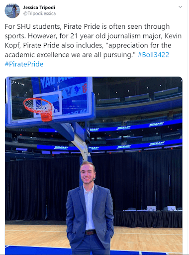 At Seton Hall, there’s no lack of pirate pride on campus. Here at SHU we bleed blue and it definitely shows. Our first tweet showcases exactly how we let our school spirit shine.