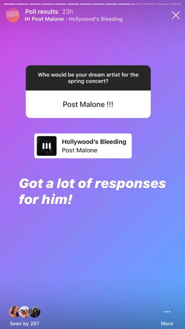 To see how this would work, once again I took to Instagram to ask Seton Hall Students who they would like to see perform at our Spring Concert. Here are just a few of the many responses I got: